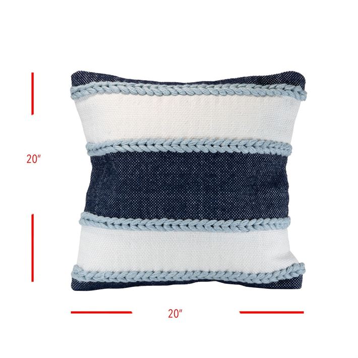 Description: Add a touch of sophistication and style to your living space with the Cindy pillow. The bold stripes and timeless blue color make it a standout classic design that will complement any decor. The woven stripes are surrounded by lighter blue pulled yarns, adding texture and visual interest to the pillow. Made of recycled PET plastic, this pillow is not only stylish but also eco-friendly. Suitable for both indoor and outdoor use, the Cindy pillow is made with high-quality materials that you can feel. Upgrade your home decor with this versatile and chic accent piece.