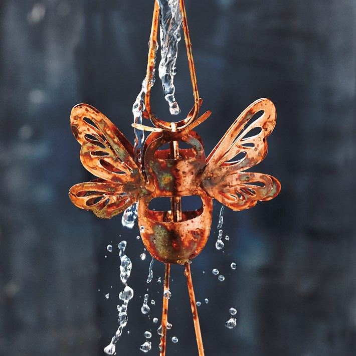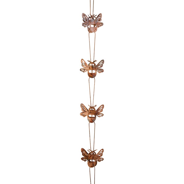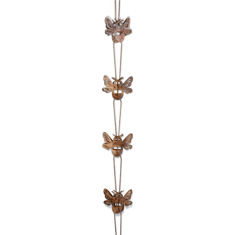 Description: Add a touch of elegance and charm to your outdoor space with this handcrafted bee rain chain. Made to withstand the elements, this rain chain allows water to flow smoothly from your gutter or roof, creating a beautiful visual and auditory experience. The bee design adds a whimsical touch to your garden or patio, while the included instruction sheet makes installation a breeze. Enjoy the soothing sound of rain cascading down the chain, even in windy or cold weather. Upgrade your outdoor decor with this unique and functional rain chain today.