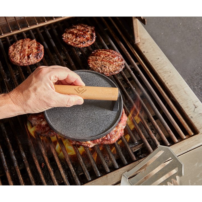 Elevate your grilling experience with our Cast Iron Burger Press Kit. Crafted from durable cast iron, this kit includes a spherical press measuring 7" in diameter and a rectangular press measuring 4" x 8". The beechwood handle provides a comfortable grip while shaping your burgers to perfection. Hand wash only to maintain the quality of this essential grilling tool. Impress your friends and family with perfectly shaped burgers every time, and become the ultimate grill master with our Cast Iron Burger Press Kit.