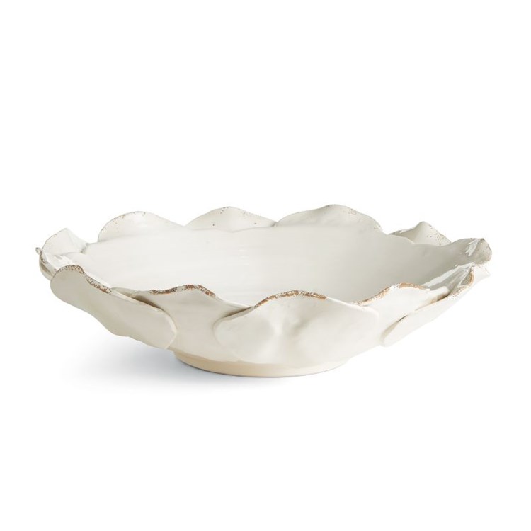 Description: Each and every petal of the Di Rosa Decorative Grande Bowl is handmade, and hand-applied by Italian artisans in Tuscany, Italy. A seamless design in a soft white glaze and delicate antiquing along petal edges. With a classic Italian craftsmanship passed down through generations, each piece is a true original. In grand scale, a dynamic centerpiece for feature table, kitchen island or mantel.