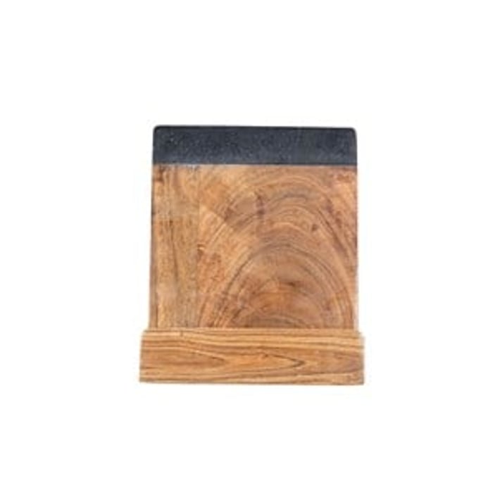 This cookbook holder is not only practical but also adds a touch of elegance to your kitchen. The combination of wood and black marble gives it a sophisticated look that will complement any kitchen decor. Its sturdy construction ensures that it will hold up well to daily use, while its size makes it versatile enough to accommodate a variety of cookbooks and tablets. Whether you're following a recipe from a book or watching a cooking tutorial on your tablet, this cookbook holder will make your culinary experience more enjoyable and organized. Invest in this stylish and sustainable piece of kitchen decor to elevate your cooking game and impress your guests with your culinary skills.