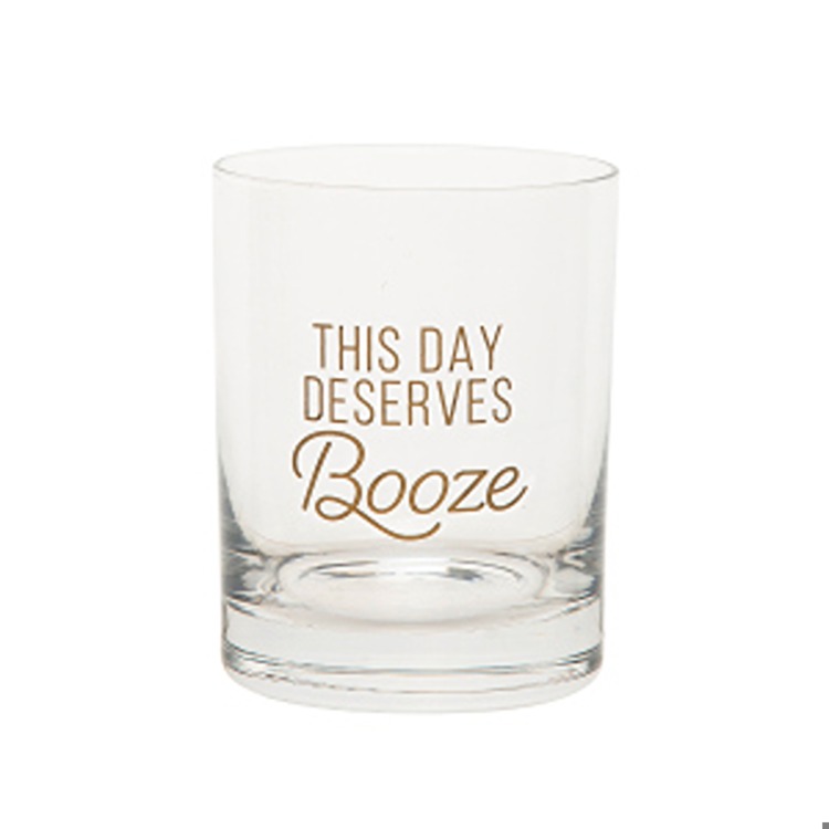 This Day Deserves Booze Rocks Glass is the perfect way to celebrate any special occasion or simply unwind after a long day. Made from high-quality glass, this rocks glass features a sleek design with the phrase "This Day Deserves Booze" etched on the front. Whether you're enjoying a cocktail, whiskey, or any other beverage, this glass is sure to add a touch of fun and style to your drinking experience. Cheers to making every day a little bit more special with this unique rocks glass!
